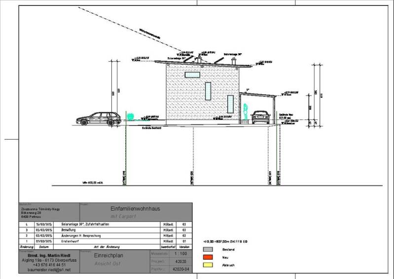 Ein Einfamilienwohnhaus mit ca. 130m2 Wohnnutzfläche. Es galt den engen Kostenrahmen und den Wünschen der Eigentümerfamilie zu entsprechen und auf Grund der extrem steilen Hanglage, ein entsprechend angpasstes Haus zu planen.